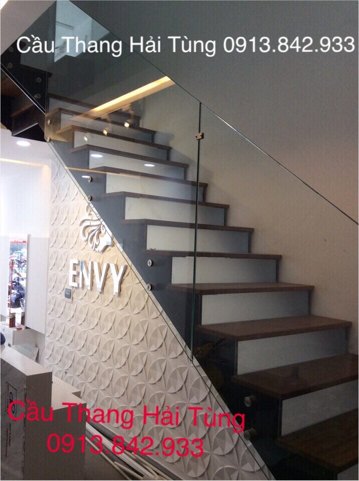 – Tay vịn dùng hệ vách kính cường lực 12 mm